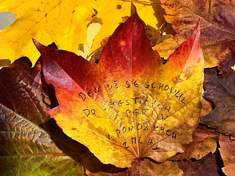 Bonusový úkol: Napište své haiku na spadnutý list, vyfoťte ho a zveřejněte ho jako obrázek.